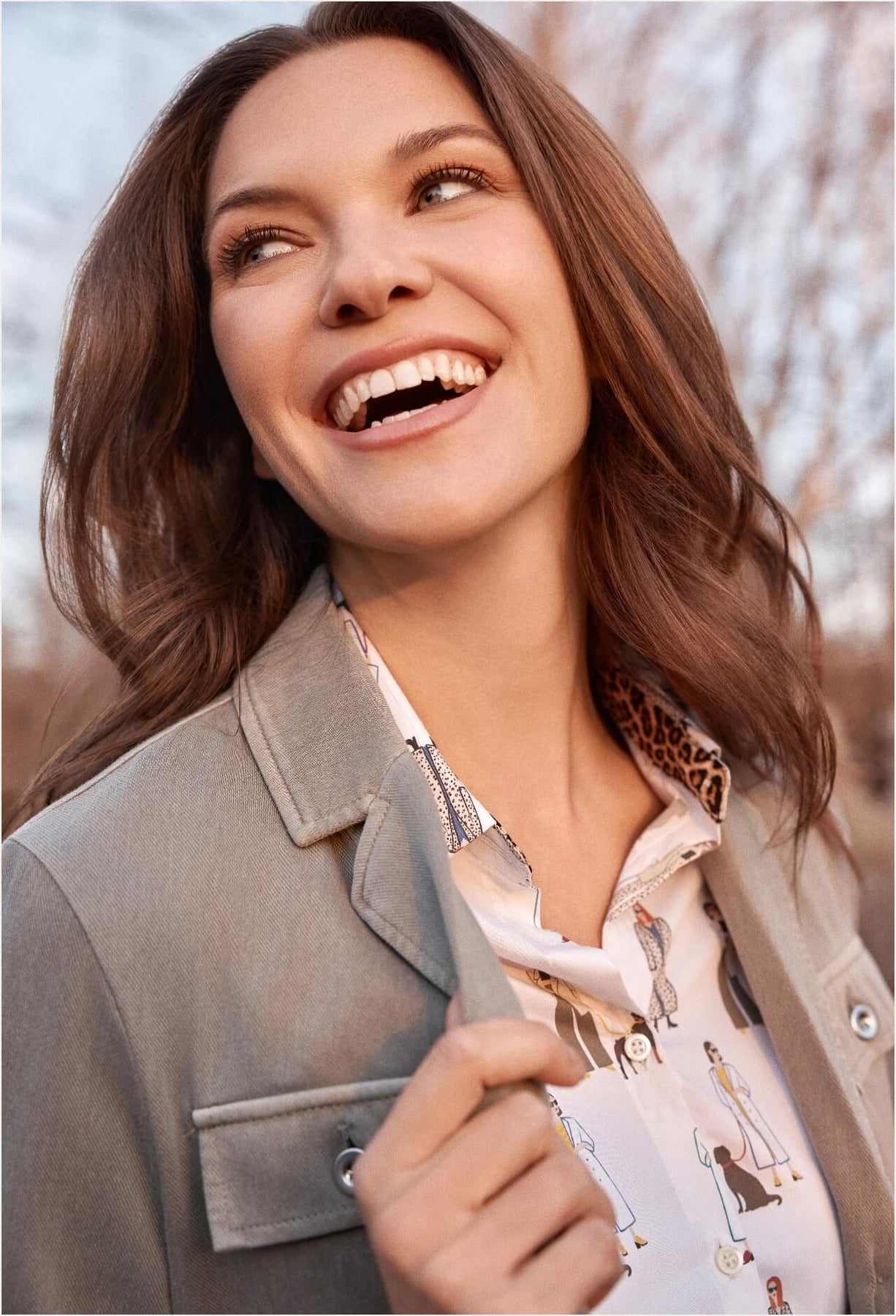 This cream-colored woven blouse features a charming novelty print that adds a playful yet refined touch to your wardrobe. Designed with a classic button-up front, it offers effortless elegance ideal for both casual and dressier occasions. The delicate combination of print and soft fabric ensures comfort while maintaining a sophisticated look.