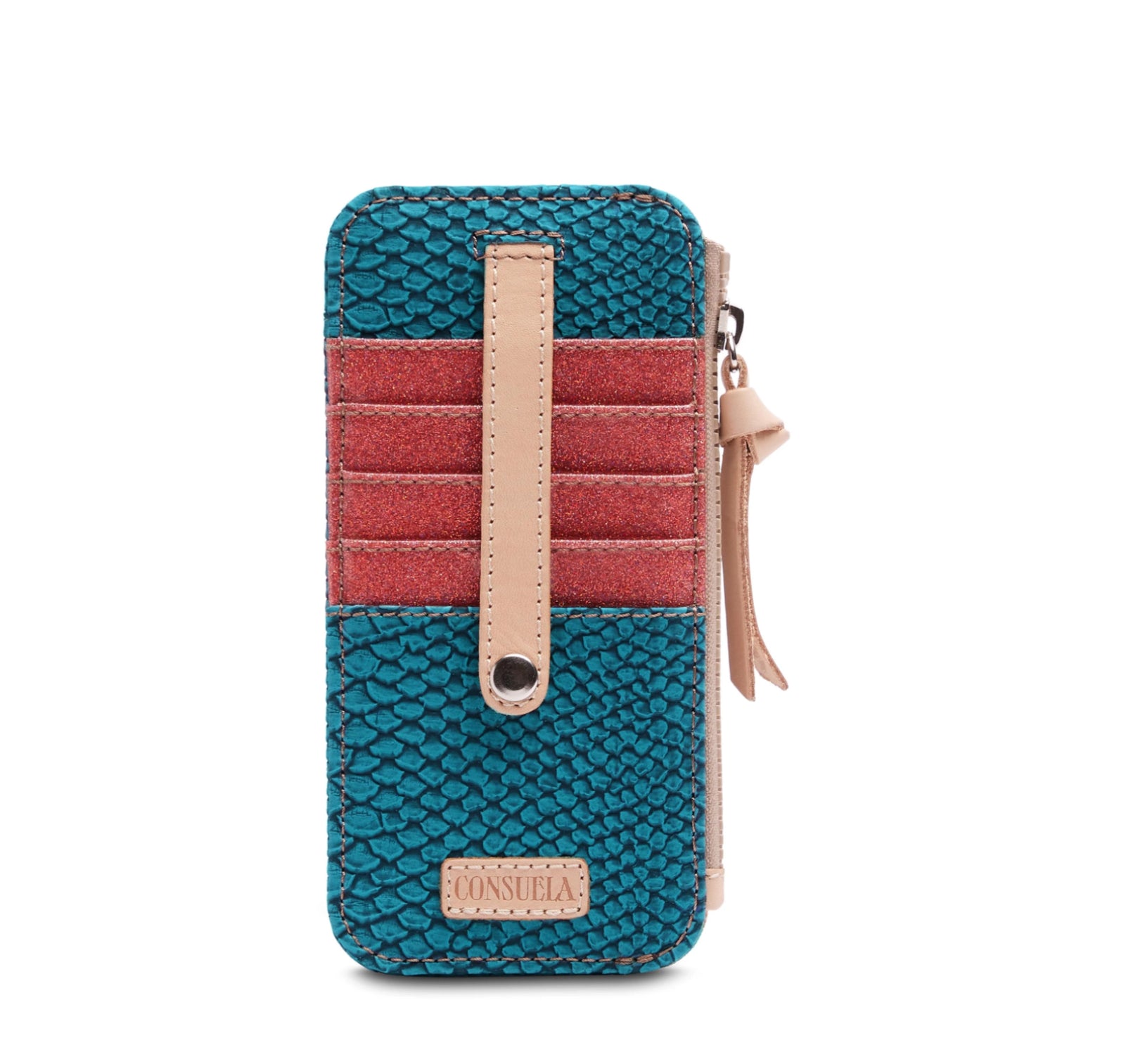 Keep your essentials close and your style even closer with the Card Organizer - Indy. This playful, textured wallet fits your credit cards and folded bills perfectly. Its snap closure and zipper compartment ensure everything stays secure while you breeze through your day with ease and flair.
