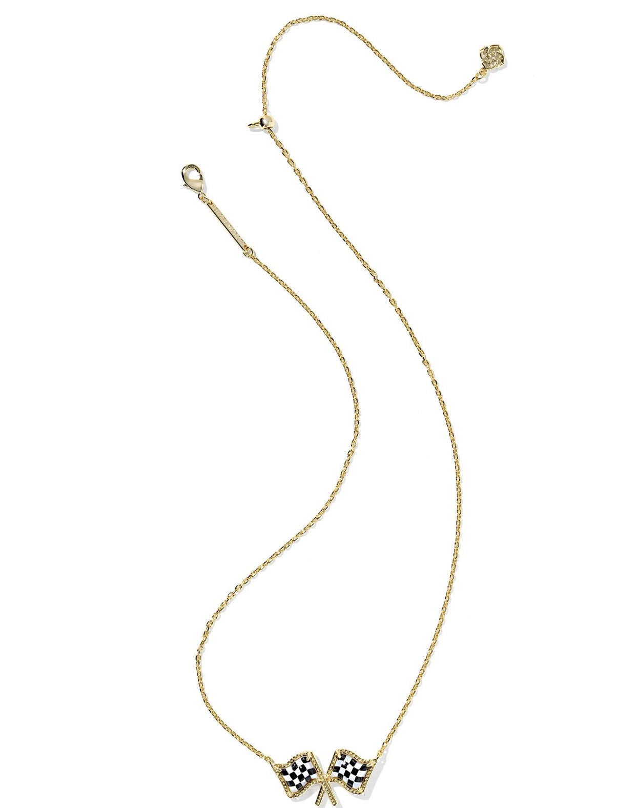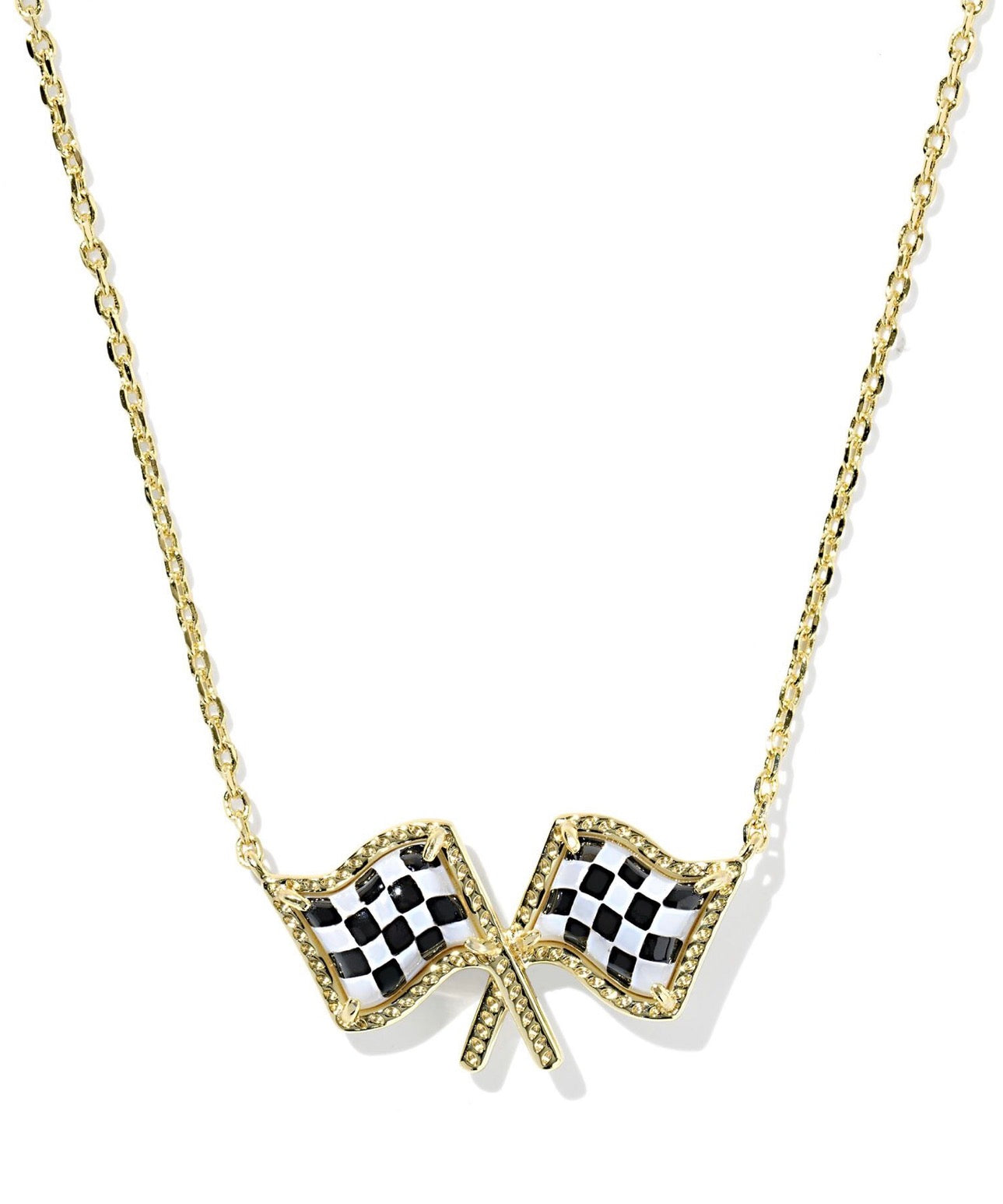 Wave the checkered flag with this bold Gold Necklace. Perfect for racing enthusiasts and speed lovers, this eye-catching pendant brings victory vibes to your everyday look. The classic checkered flag design makes a statement whether you're a fan of the track or just love the thrill of the race. Lightweight and stylish, it's the ultimate accessory for anyone who celebrates the finish line in style.